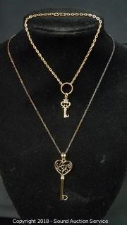 Lot #0210: Sterling 18k GP Key Pendant Necklace & Bracelet