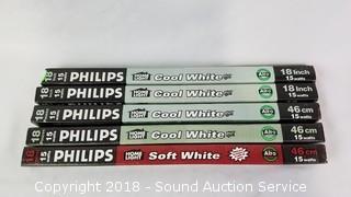 Includes: (5) 18" 1" Fluorescent Bulbs, (2) 20 Watt Halogen Bulbs, 30 Watt Halogen Bulb, and Outlet Timer.