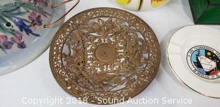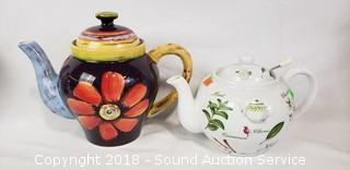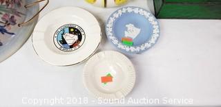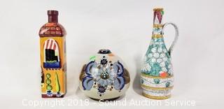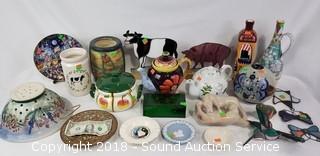 Includes: 7 Stained Glass Art Figures, Box & Decor; Italian Hand Painted bottles, Carved animal sculptures (some chips), Wedgwood Dish, Teapots & more.