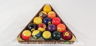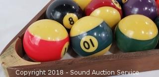 Lot #0367: Vtg. Pool Balls Set & Wood Rack - Complete