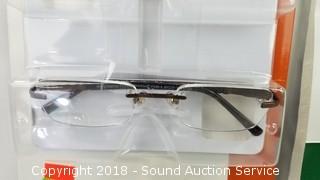 Includes: 3 Pairs of Design Optics +1.25 Rimless Reading Glasses (No cases), and 1 Pair of Sun Readers Invisible Seam Bifocal Glasses.