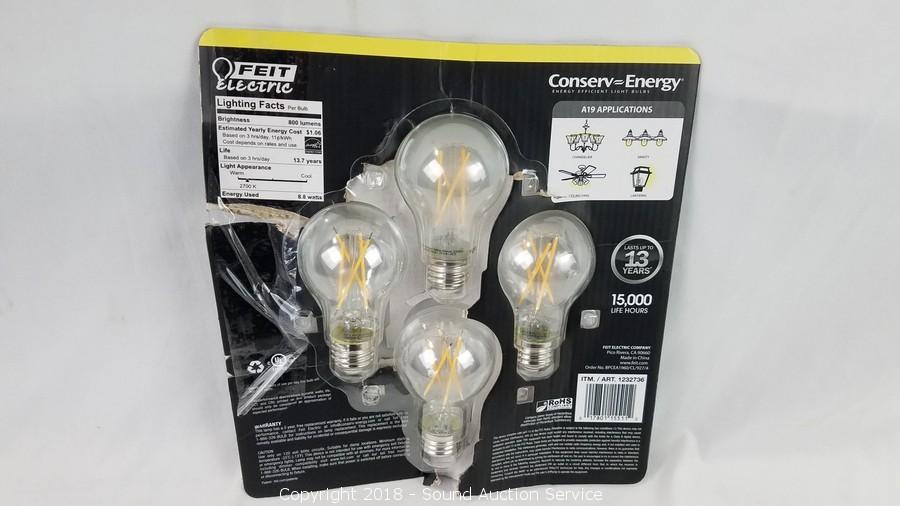 Lot #0381: 4pk Feit 8.8W LED Dimmable Light Bulbs