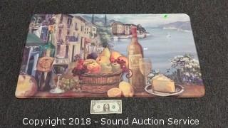 Stain resistant surface, perfect for sink, stove or laundry rooms. Coastal Italian Village print. 21" x 39".
