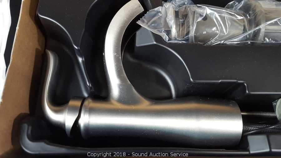 Appears to be new. Push down drain included. 1 to 3 hole installation. Model 84303SRN.
