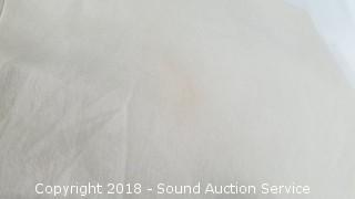 Includes: 4 pillow cases, 1 flat & 1 fitted. 100% cotton. There's a small stain on one pillowcase.
