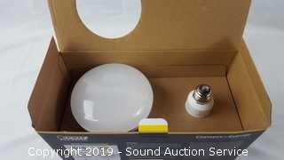 Comes in original box. 75 watt replacement, uses only 11.8 watts, 1065 lumens, 2700k color, 110 degrees of light. Model BR40.