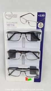 Lot #0056: 3pk Design Optics +2.5 Full Frame Reading Glasses
