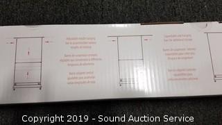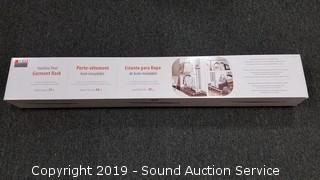 Adjustable middle hanging bar, expandable side hangers. Overall 47" to 70" W. Rust resistant stainless steel construction, aluminum alloy connectors for increased durability. Weight capacity 77 lbs.