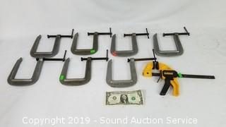 Lot #0025: 7 C-Clamps & DeWalt Quick Grip Clamp