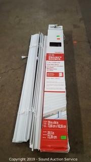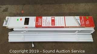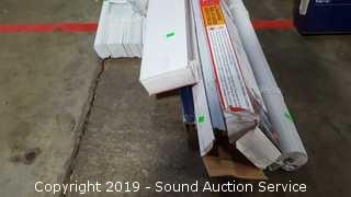 Levolor 38" x 72" 2" Faux Wood Walnut Blinds, Project Source 28" x 64" Vinyl Mini Blinds, Style Selections 30.5" x 72" Faux Wood Blinds, Various Damaged Blinds, (6) Levolor Faux Wood Returns, 58-3/4" x 17" Aquamarine Cordless Cellular Blinds, 58-5/8" x 17" Aquamarine Cordless Cellular Blinds, 34-3/4" x 17" Aquamarine Cordless Cellular Blinds, 34-7/8" x 17" Aquamarine Cordless Cellular Blinds, Levolor 28" x 72" Cordless Cellular Shade, Levolor 71" x 64" 2" Faux Wood Blinds, Levolor 33.5" x 58" 2" Faux Wood Blinds, Levolor 21.5" x 46" 2" Faux Wood Blinds, Levolor 24.5" x 69" 2" Faux Wood Blinds, Levolor 26" x 72" Roller Shade, (2) 14" x 72" Solar Roller Shades, and Levolor 34-1/8" x 46" Blinds.