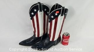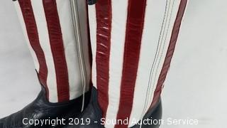 Lot #0215: Code West Leather American Flag Cowgirl Boots 8.5