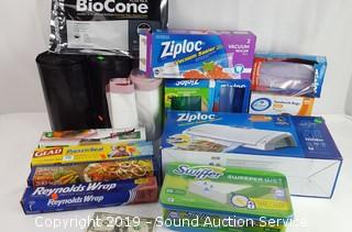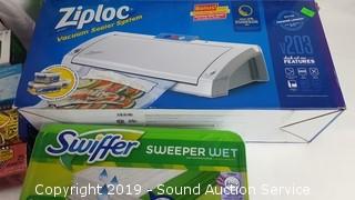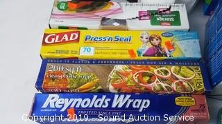 Includes: Reynolds Wrap, Ziploc Sandwich Bags, Kitchen Trash Bags, Vacuum Sealer Rolls, Aluminum Foil, Swiffer Sweeper Wet Refills, Large Black Trash Bags, and more.