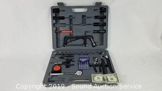 Looks to be missing one piece (screwdriver?). Comes in hard case. In excellent condition.