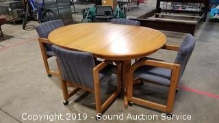 Lot #0356: Oak Dining Set w/4 Rolling Chairs