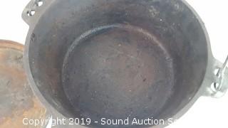 Lot #0256: Rustic Cast Iron Footed Dutch Oven w/Lid
