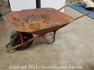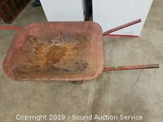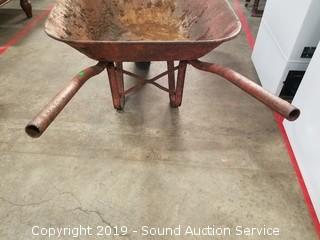 Lot #0421: Rustic Yard Art Wheelbarrow Planter