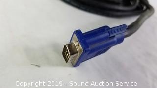 Does not come with power plug. Takes a standard computer power plug. Comes with RGB cable. Untested.