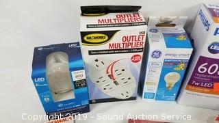 Lot #0376: Various Light Bulbs, Outlet Multiplier w/USB Ports