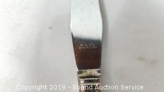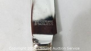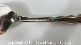 Mostly National Silver Co and Roger Bros. 100+ pieces. Comes in tarnish proof wooden chest. Complete service for 6 of National Silver Co flatware except for the small snack forks.