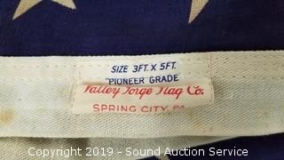By Valley Forge Flag Company. Pioneer Grade. No tears, some discoloration from age.