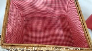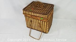 Lot #0049: Wicker Woven Picnic Basket w/Dish Set
