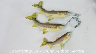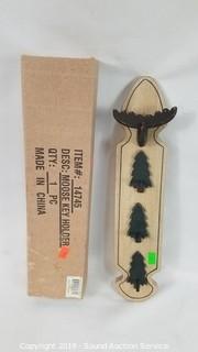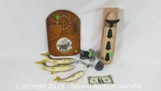 Includes: Wooden Moose Key Holder, Hand Made Carved Ram Moose & Bear Sculptures, Trout on a Line, and Alaska Moose Clock.