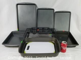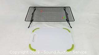 Lot #0140: Wilton Baking Pans, Cutting Board & Metal Rack