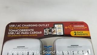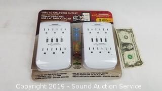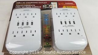 Lot #0365: 2pk USB/AC Charging Outlets w/Surge Protection