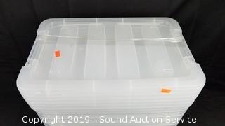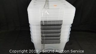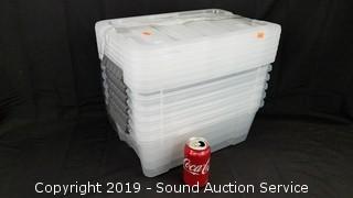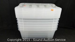 Lot #0063: (6) 12.9QT Clear Plastic Stackable Storage Totes