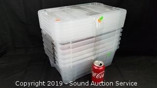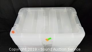 Lot #0092: (6) 12.9qt Clear Plastic Storage Totes w/Lids