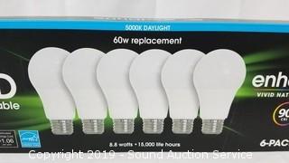 Lot #0107: 6pk Feit LED Dimmable 8.8w Light Bulbs