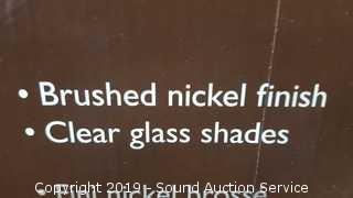 Comes in original box. Brushed nickel finish, looks like it has been previously installed. Approx. 25.5" x 9.8" x 7.7".