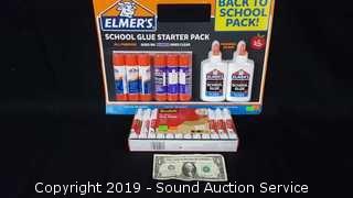 Both are new in sealed packages. Includes: (24) 0.28oz Scotch Glue Sticks, and Elmer's School Glue Starter Pack.