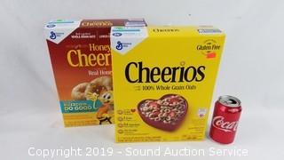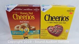 Includes: 1lb 11.5 oz Box Honey Nut Cheerios, and 1lb 4.35oz Box of Whole Grain Cheerios. Best by October 2019.
