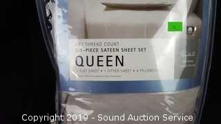 Lot #0049: Kirkland 6pc. Grey Queen Sateen Sheet Set
