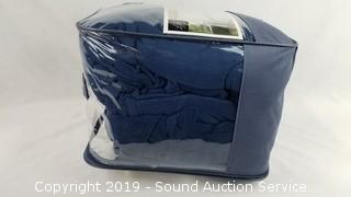 1 flat, 1 fitted, 2 microfiber pillowcases, 2 fleece pillowcases. Blue color. Has been used.