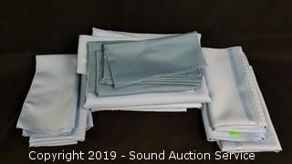 Includes: 60" x 80" Blue Oval Tablecloth w/Napkins, 62" x 50" Rectangular Tablecloth w/Napkins, 80" x 56" Tablecloth w/Napkins, 100" x 56" Rectangular Tablecloth w/Napkins, and Service for 4 Placemats & Napkins Set.
