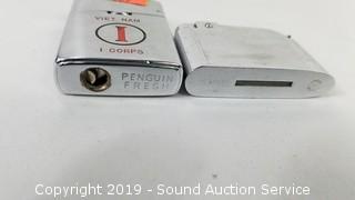 Includes: Penguin, Ronson, Marullan, Modern XGas 600, and 2 Bentley's. One of the Bentley's won't flick. Looks like they all need flints and fuel.