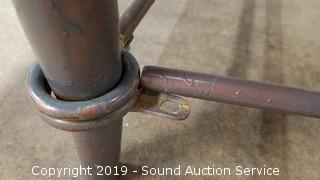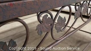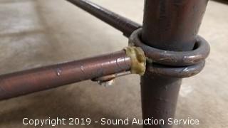 The weld has come free on one of the bottom metal pieces. Approx. 20" H, 40" square.
