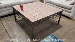 Lot #0006: Contemporary Tile Top Metal Base Coffee Table