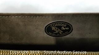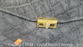 From Corbeau Curio Kruger Park. In excellent condition. Established in 1947, Corbeau is a Cape Town-based company that manufactures and designs exotic leather products. While specializing in Crocodile and Ostrich leather, handbags and small leather goods are manufactured in all leather types. Approx. 9.5" x 12.5" x 3.5".