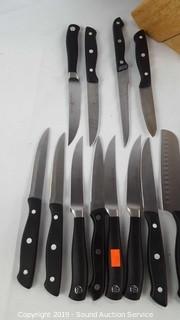 Includes: Set of 4 Wusthof Grand Prix Steak Knives Solingen Germany, and Farberware Knife Set.