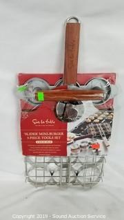 Includes: New Slider Mini Burger 3pc. Tool Set, Corn Cob Grill Rack, Hot Dog Grill Rack, 2 Sets of 7" x 16" x 3/8" Cedar BBQ Planks, and Brinkmann 4pc. BBQ Utensil Set. All look to be unused.