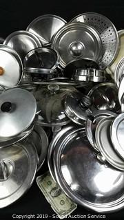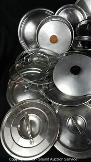 Lot #0284: Huge Lot of Glass & Stainless Steel Lids