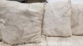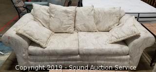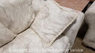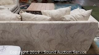 Lot #0004: Nice Leaf Print Fabric Sofa w/Throw Pillows