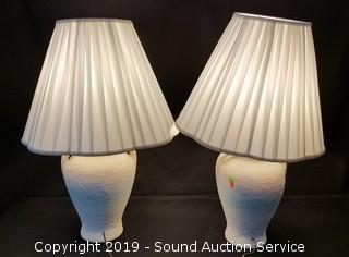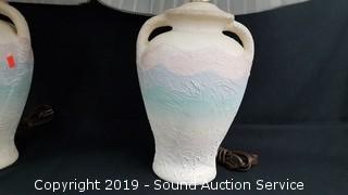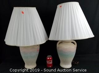 Lot #0017: Pair of 27" Pastel Pottery Table Lamps
