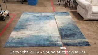 Both have some stains. Includes: 5ft x 7ft 6" Area Rug, and 2ft 6" x 8ft Runner Rug.