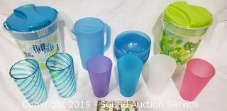 Lot #0342: Plastic & Acrylic Pitchers, Cups & Bowls