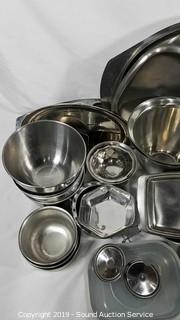 Lot #0240: Restaurant Stainless Steel Serving Dishes & More