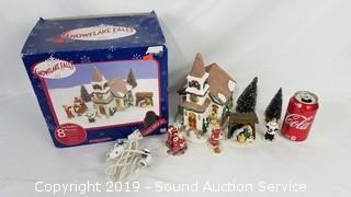 Lot #0130: Snowflake Falls 8pc. Lighted Church Village